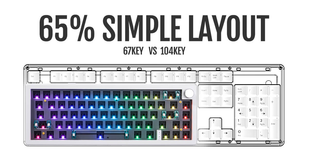 - [PCB orienté vers le sud] : Le PCB orienté vers le sud du GMK67 offre plus de compatibilité et de flexibilité. Pour mieux éclairer le rétroéclairage du clavier du point de vue du dactylo.