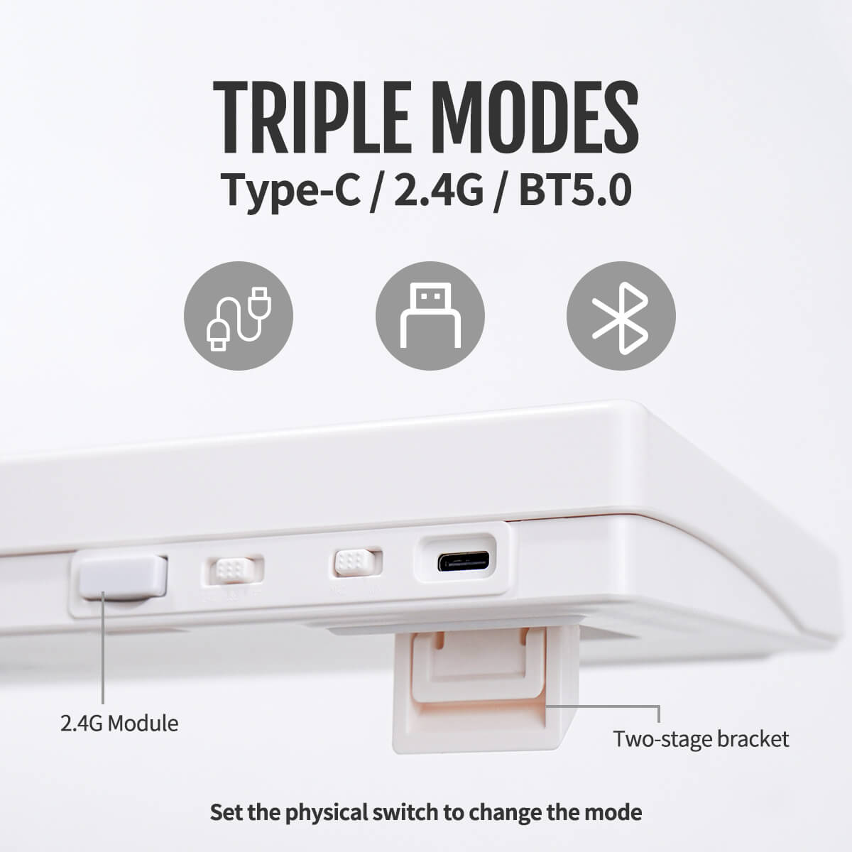 Le clavier sans fil GMK67 peut être remplacé à chaud à volonté par tous les commutateurs mécaniques similaires à MX (y compris Gateron, Cherry, etc.), prenant en charge les commutateurs à 3/5 broches. Ce clavier sans fil est disponible avec un commutateur bleu/marron/rouge.