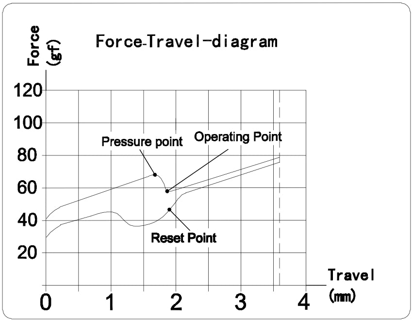 Force opérationnelle | 60 gf (+/- 15 gf) | 60 gf (+/- 15 gf) | 50 g/g (+/- 10 g/g) |
