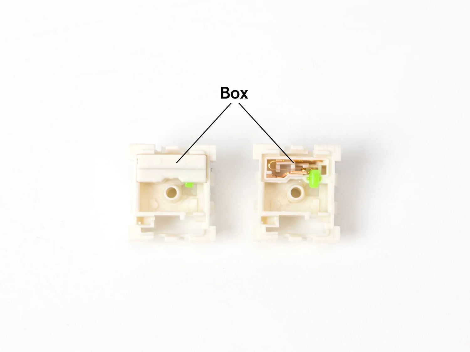 Les commutateurs Box sont conçus avec un contact en or 18 carats qui permet une résistance élevée à la corrosion, des propriétés antioxydantes et garantit une durée de vie du commutateur d'environ 80 millions de frappes.