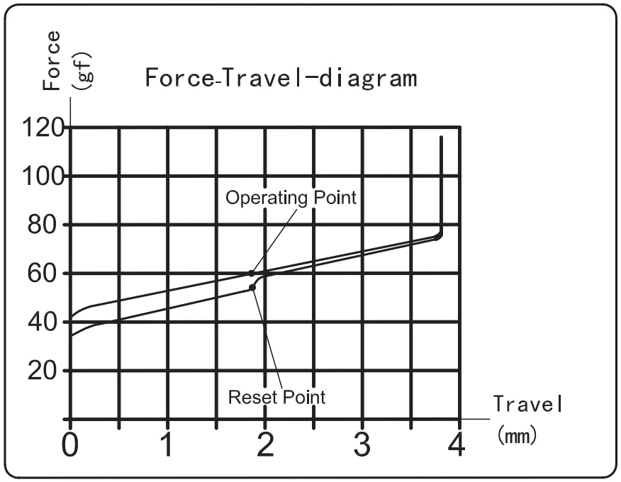 Force tactile | - - | - - | 60 gf (+/- 10 gf) | 55gf (+/- 10gf) |