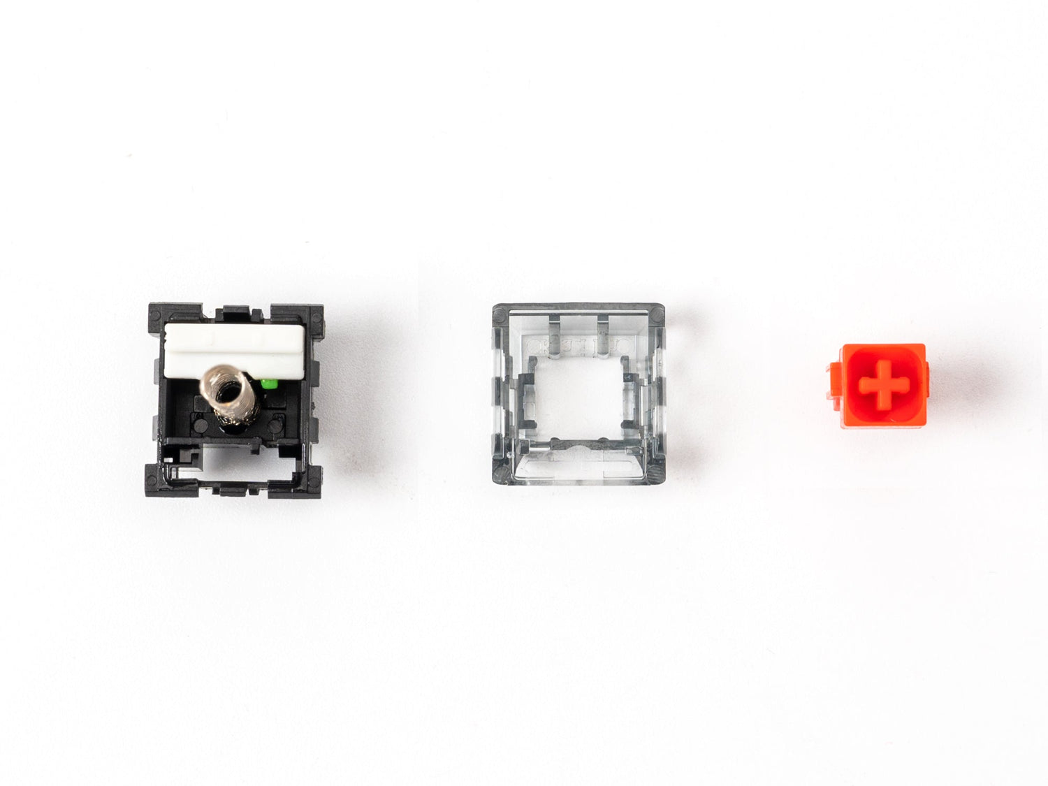 Le nouveau commutateur Box V2 est doté d'une tige POM, d'un couvercle translucide noir et d'une base noire solide avec une colonne de positionnement à 5 broches. Le couvercle de la fente LED est à moitié scellé pour assurer une transmission de lumière plus importante. Il y a 2 petites ouvertures sur la fente LED pour la rendre compatible avec la LED à 2 broches et la LED SMD. De plus, par rapport au V1, le commutateur Box V2 présente également quelques différences dans sa sensation de frappe. Au lieu de la touche tactile traditionnelle du V1, le commutateur marron Box V2 a une réponse tactile plus lourde et plus forte et est plus avancé que le V1. Le commutateur rouge Box V2 offre également une sensation plus uniforme et plus douce que le V1.