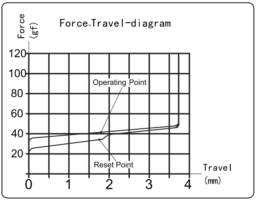 Course d'actionnement | 1,80 ± 0,4 mm | 2,0 ± 0,4 mm | 1,80 ± 0,4 mm |