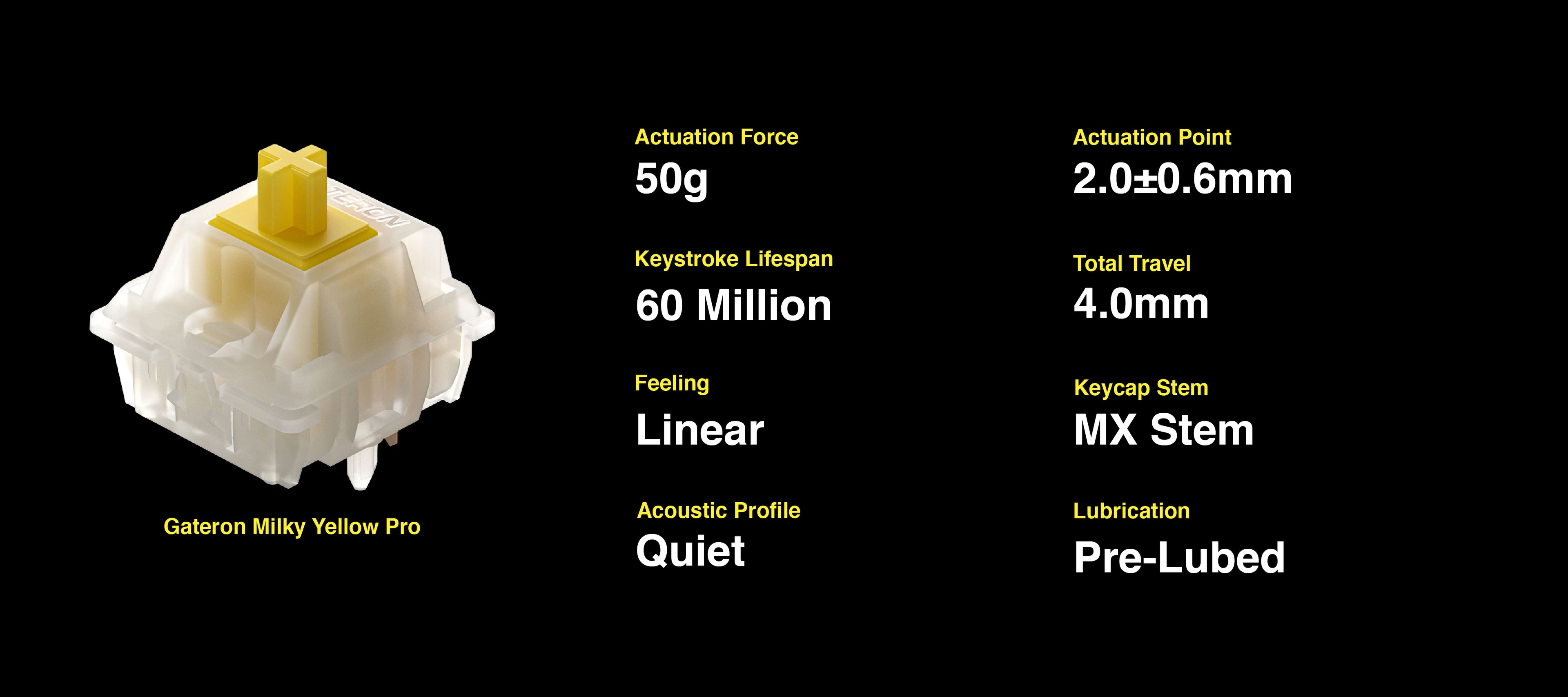 - Gateron Milky Yellow Pro Pre-Lubed Linear Switches