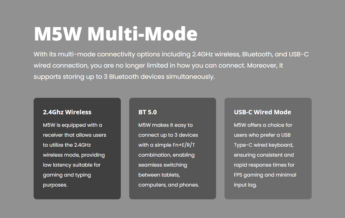 The Monsgeek M5W Mechanical Aluminum Keyboard Barebone is a state-of-the-art, meticulously designed input device that seamlessly blends form and function. It's ideal for enthusiasts, gamers, and professionals seeking a top-tier typing experience.