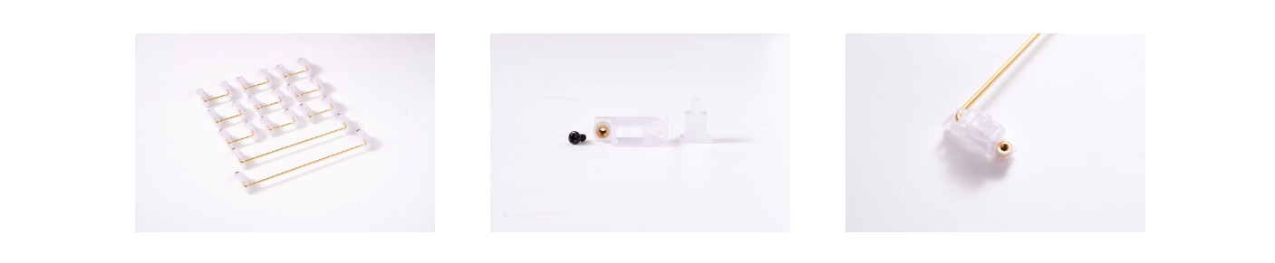 PCB Mount/Screw-in stabilizers tend to vibrate less. M6 QMK uses Akko screw-in stabilizers (un-assembled/random color) with nylon housing in case users want to lubricate.