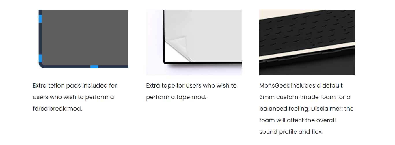 Monsgeek has undergone an upgrade, transitioning to Poron case foam with superior elasticity. Meanwhile, MonsGeek M6 comes with an additional sponage case foam to reduce case ping.